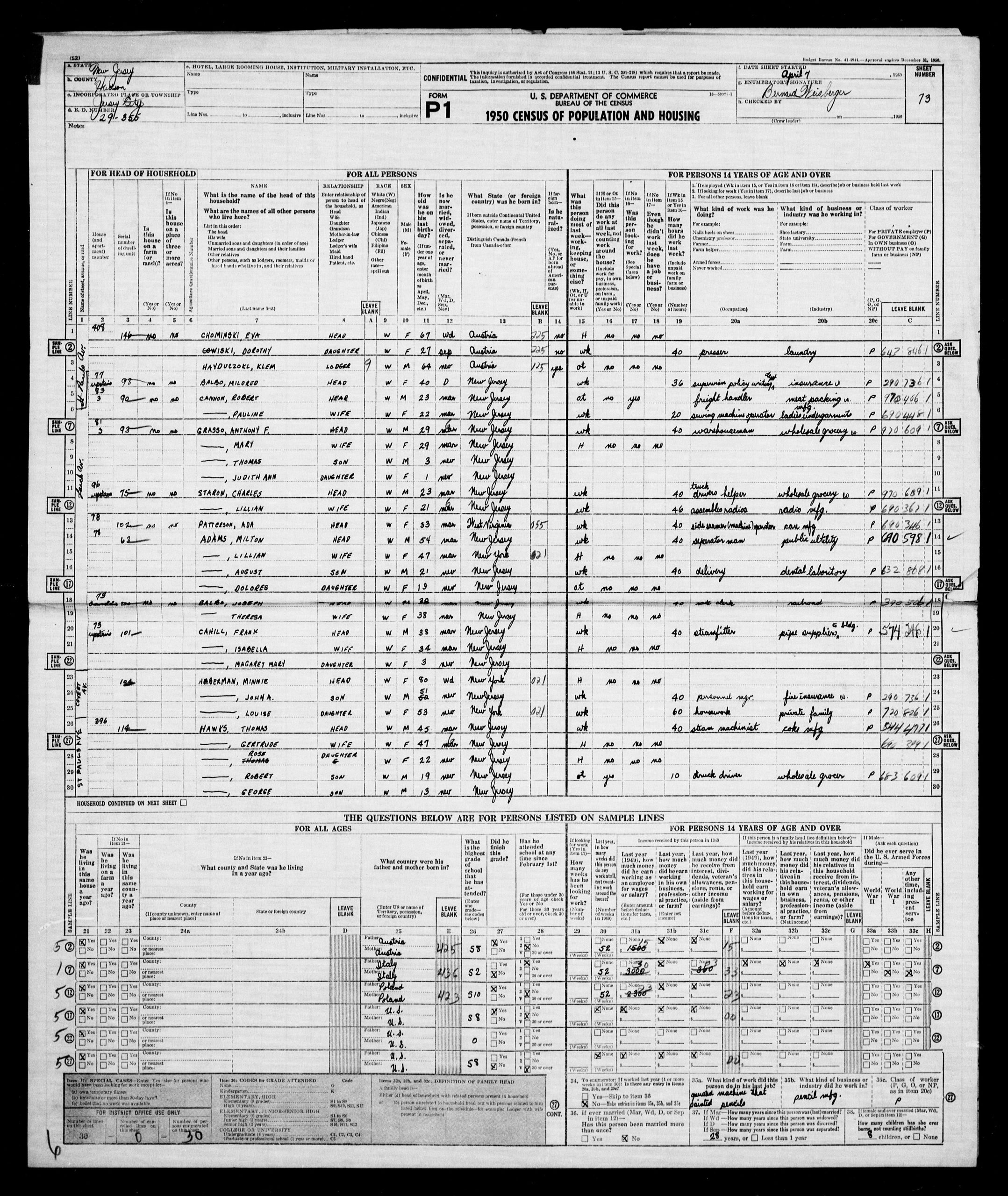 This is a record from the 1950 census showing Thomas, Gertrude, Rose, Robert and George Hawks.