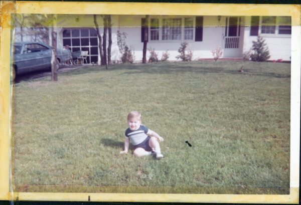 Robby Hawks with Grandma Mary Hanley by Garage